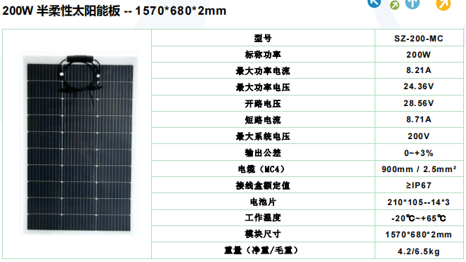 200W photovoltaic modules Monocrystalline semi-flexible board 200W Monocrystalline semi-flexible board manufacturer