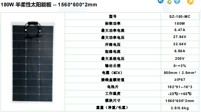 180W semi-flexible solar panel SZ-180-MC